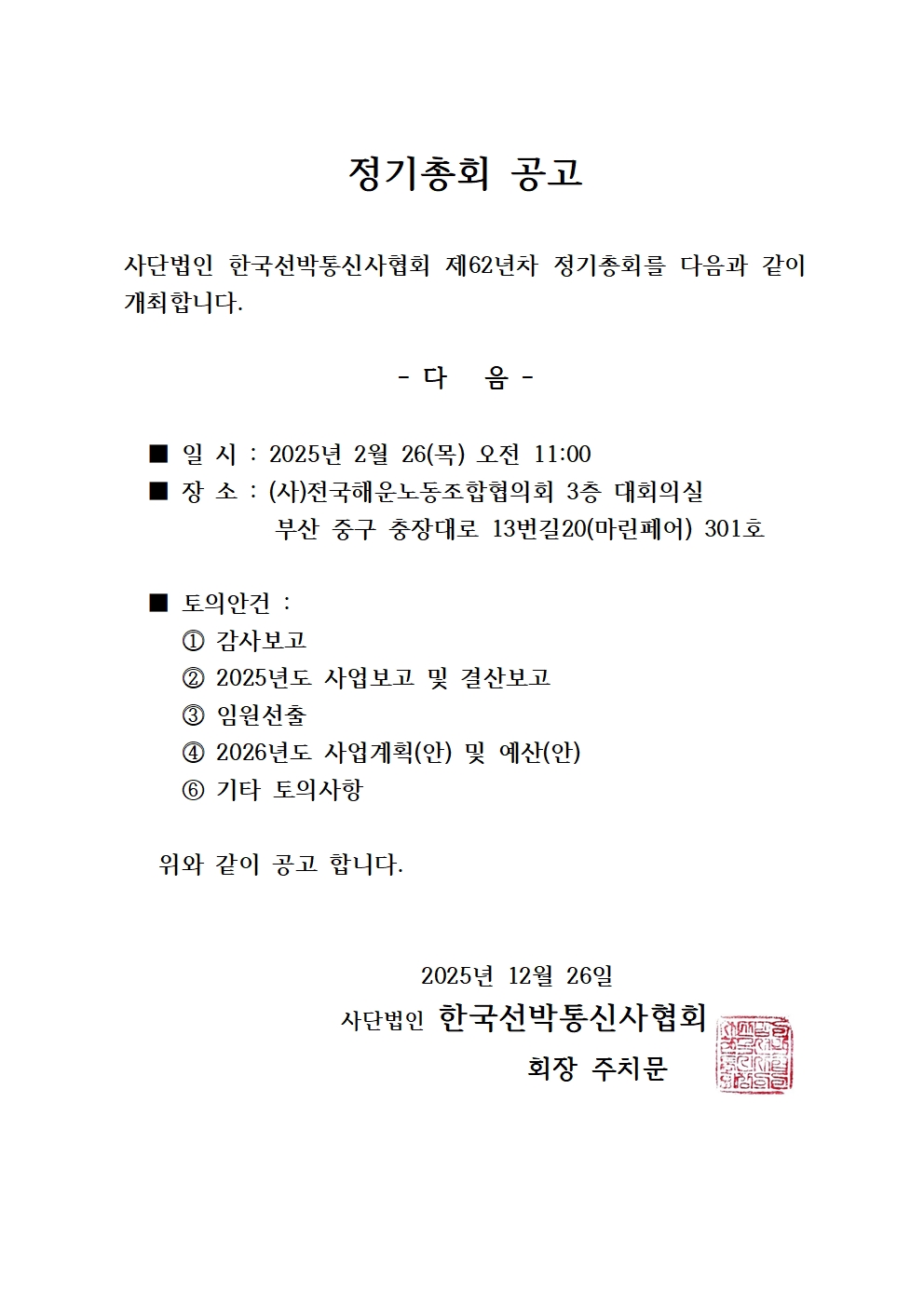 [공고] 제62차 정기총회